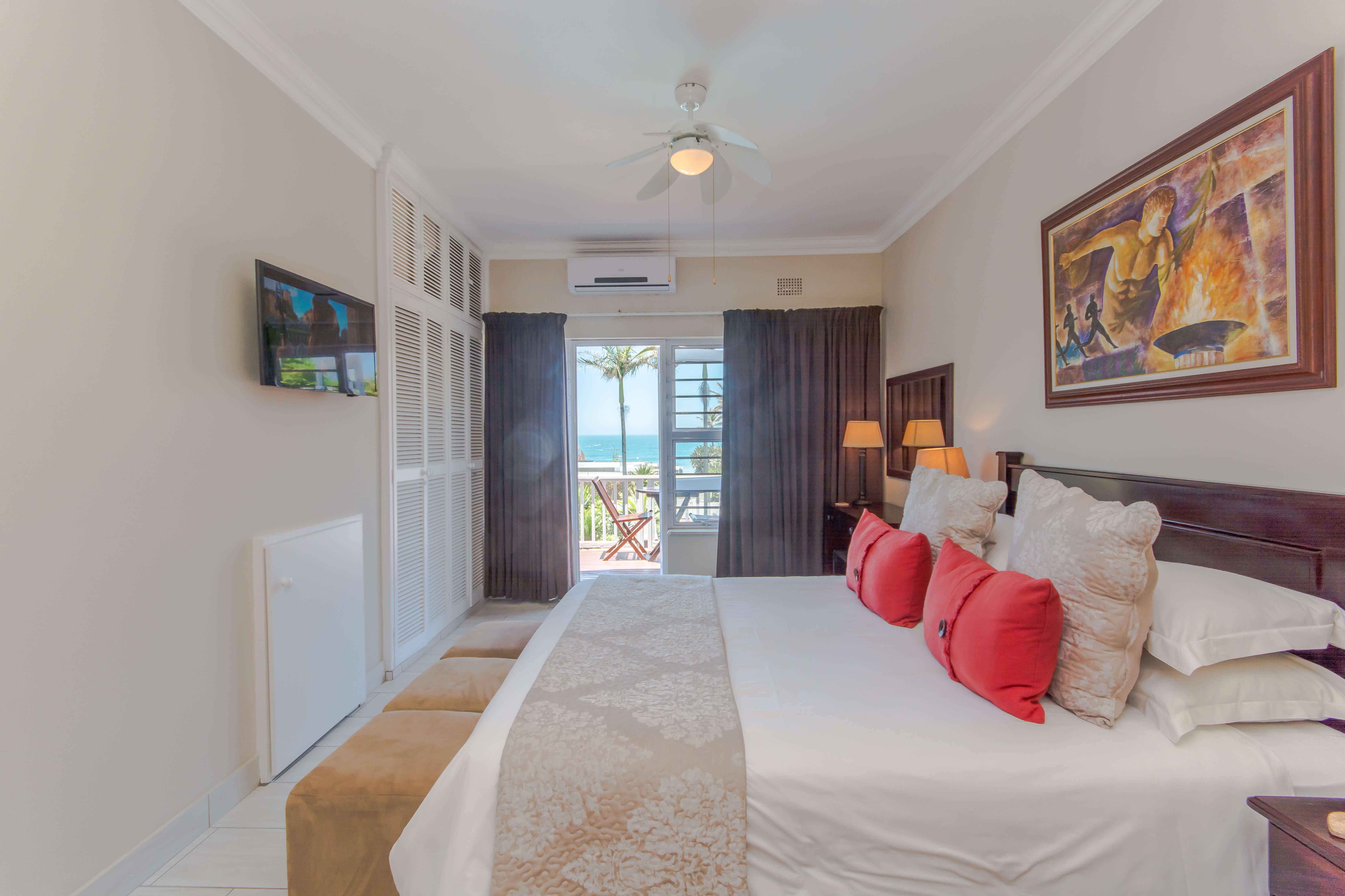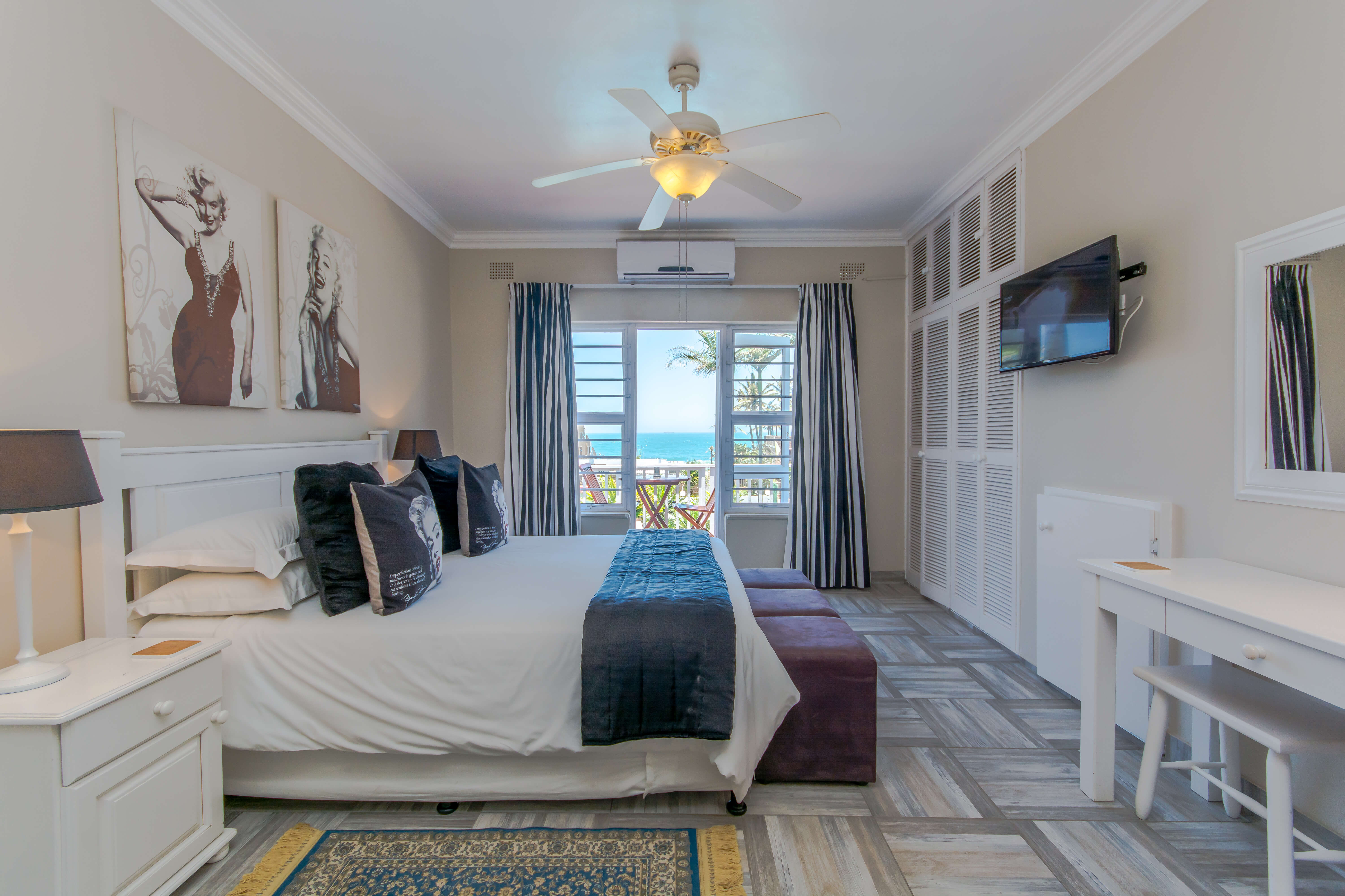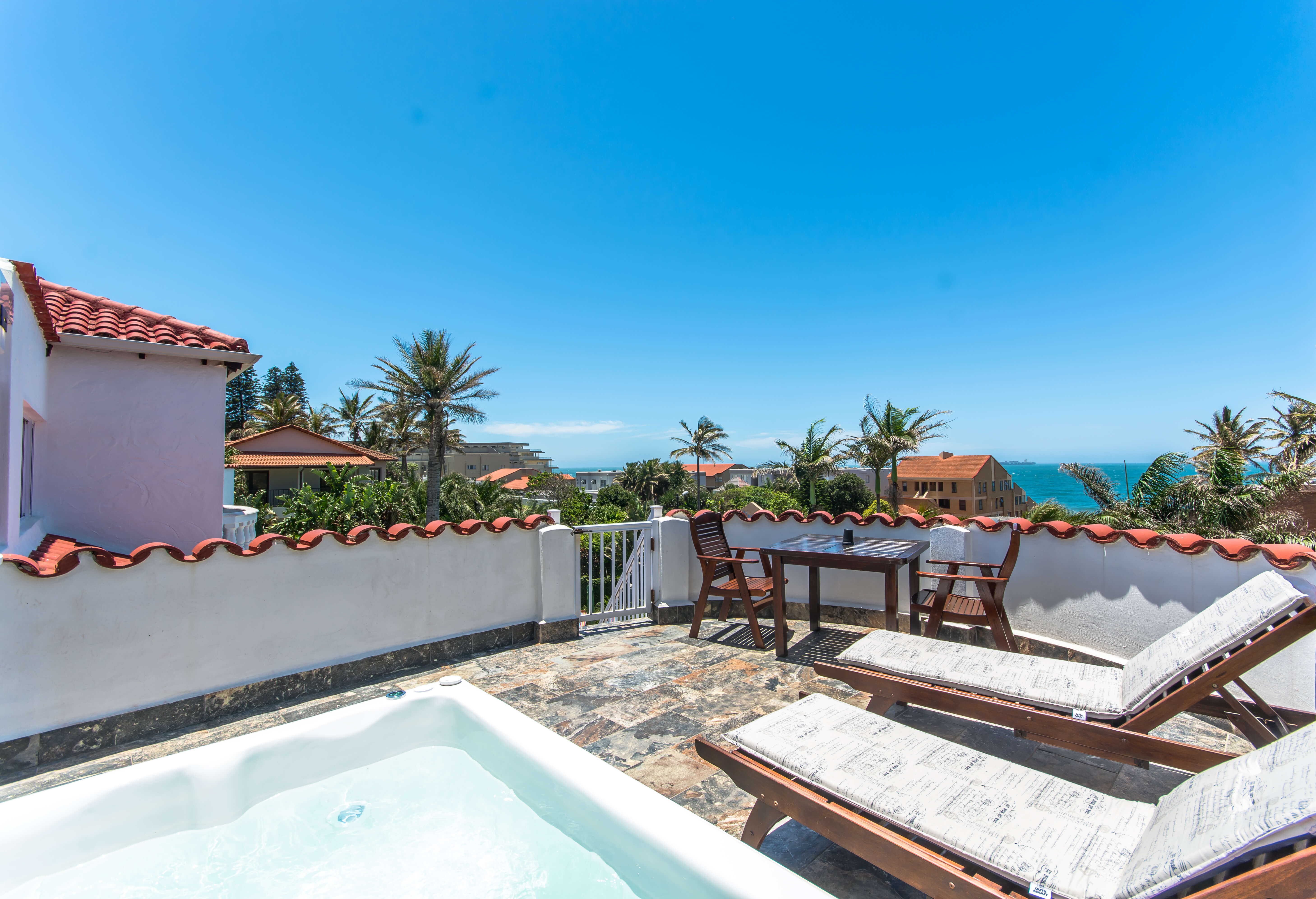 This large ocean view unit consist of a Private Balcony with Jacuzzi and Sun loungers. Queen size bed, Lounge, en suite bathroom with double basins and double showers.